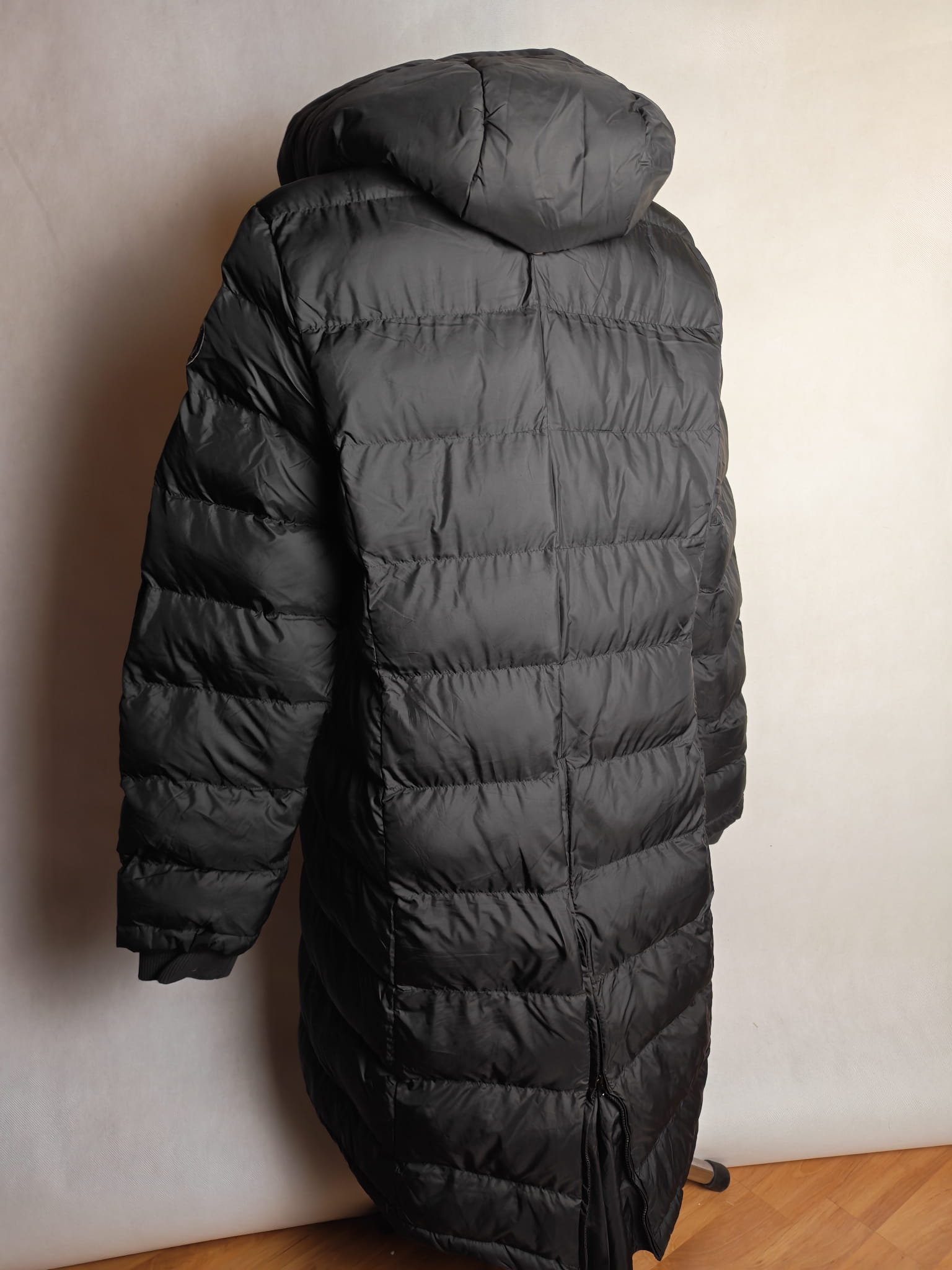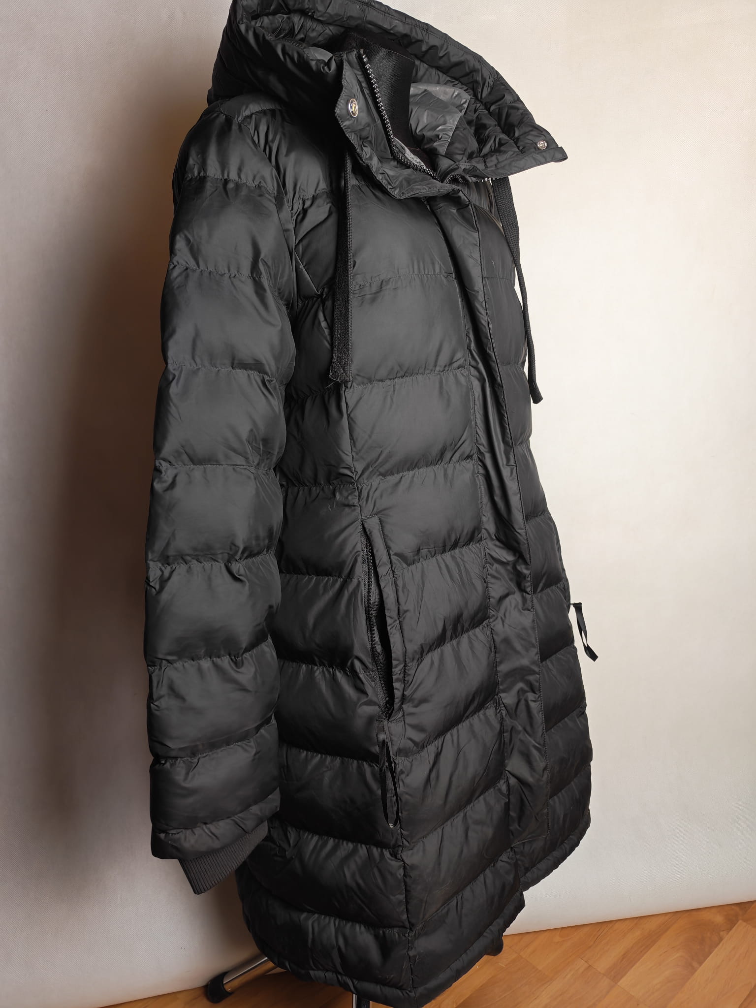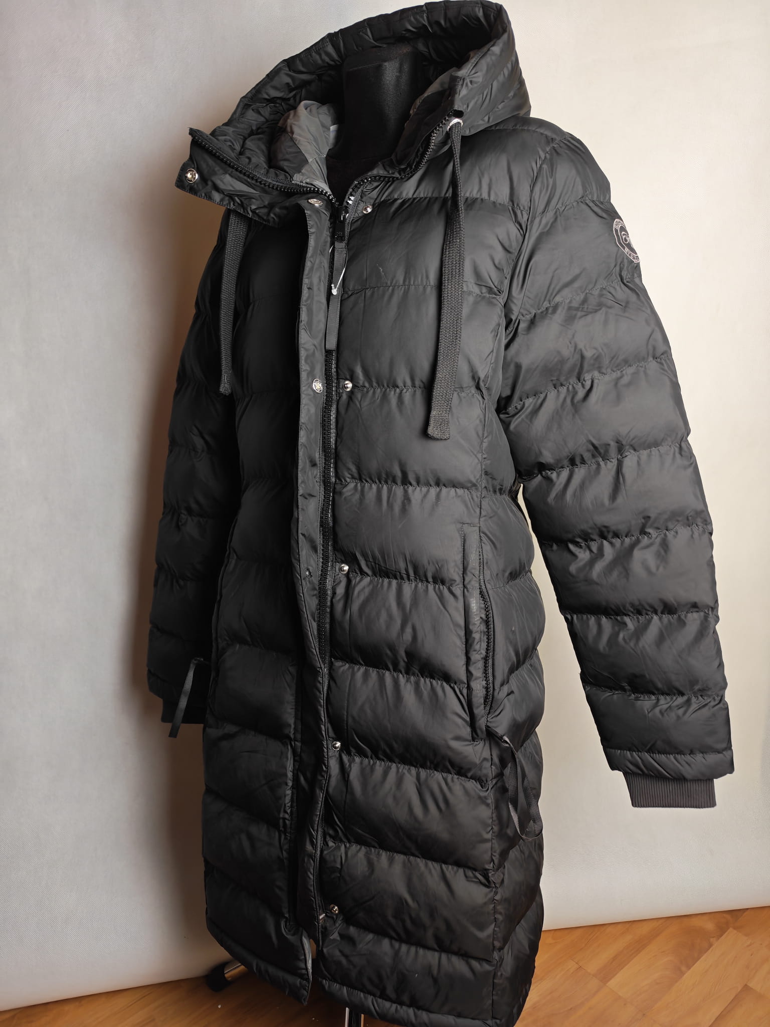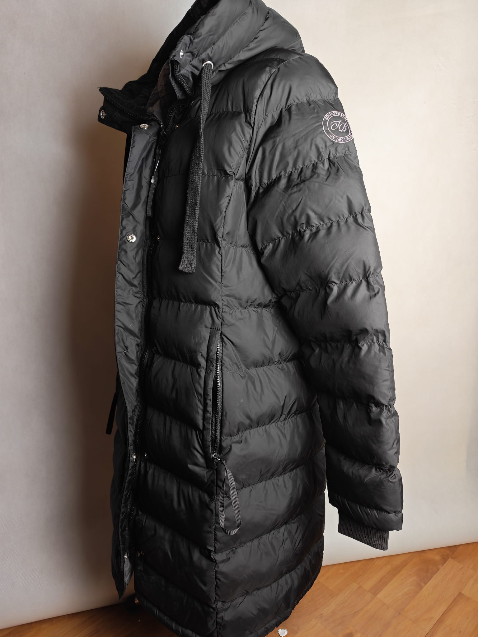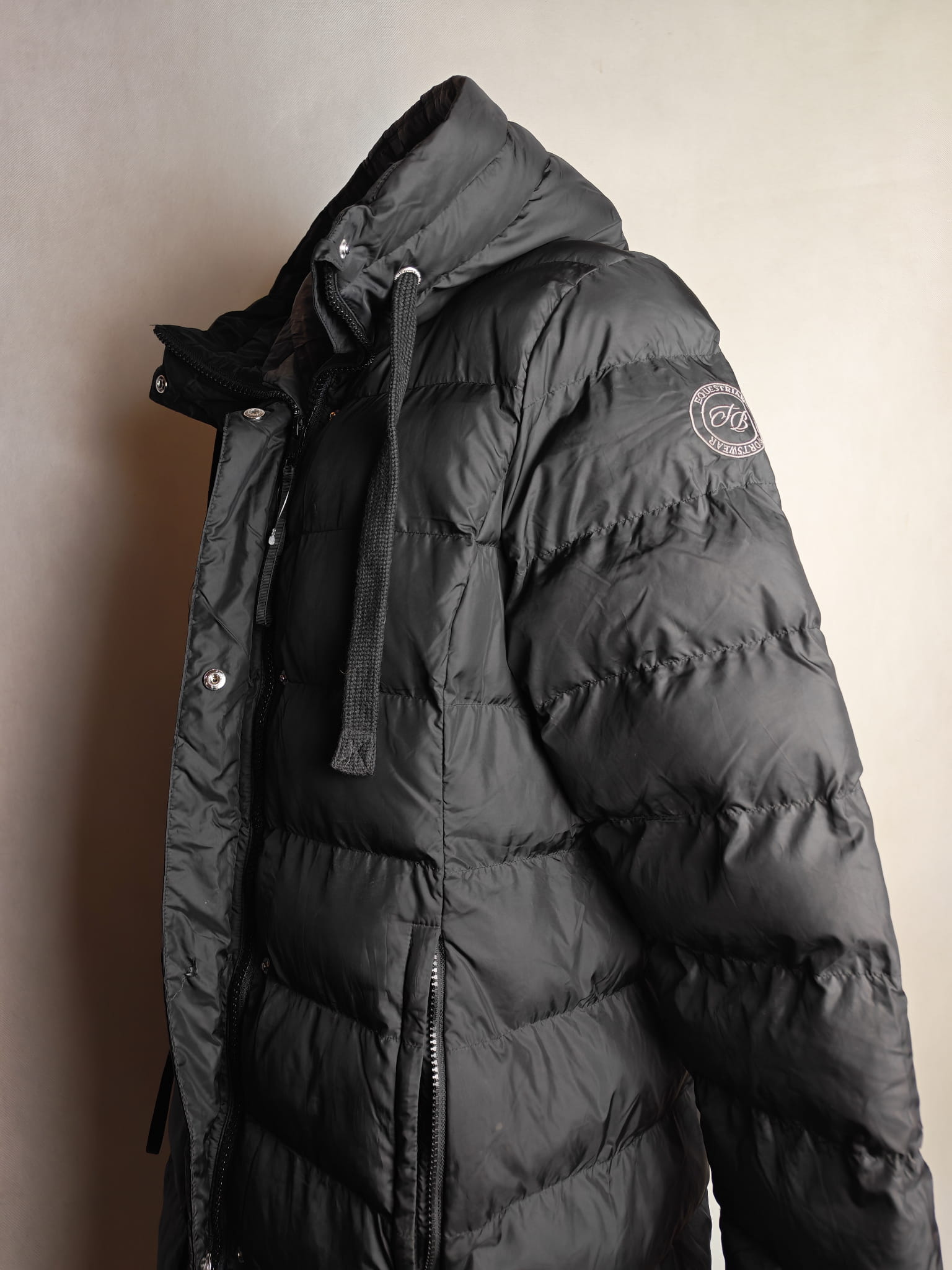 Niezwykle ciepły, długi płaszcz jeździecki! Miękkie wypełnienie z puchu syntetycznego, bardzo wysoki, regulowany i pikowany kaptur z możliwością dopięcia z tyłu. Ukryty dwukierunkowy zamek błyskawiczny z przodu, dwie ukryte kieszenie zapinane na zamek, wyściełane miękkim polarem. Wiatroodporny i wyjątkowo ciepły. Miękkie ściągacze przy mankietach i długi, podszyty zamek błyskawiczny z tyłu. Wysokiej jakości haft Felix Bühler na rękawie.